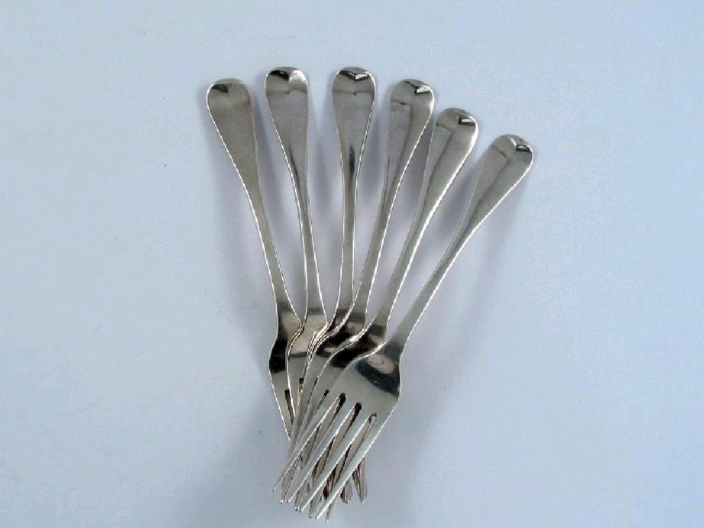 York Interest: a matched set of six George IV Old English pattern dessert forks by Barber & Cattles, & North, York 1825/28, 7oz. (6)