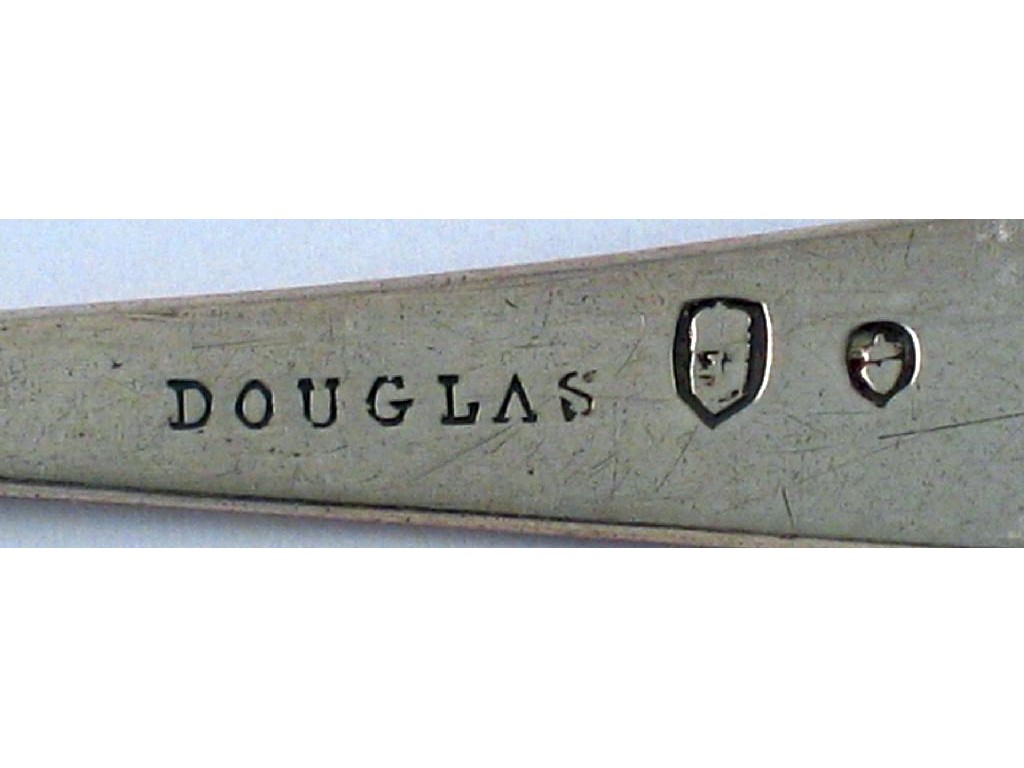 A George III Scottish provincial teaspoon, initialled by James Douglas Dumfries, (Douglas (incuse), device, topped heart).
