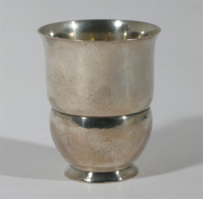 A Christian Heise silver beaker vase waisted form with hammered finish, stamped marks 8.5 cm. high