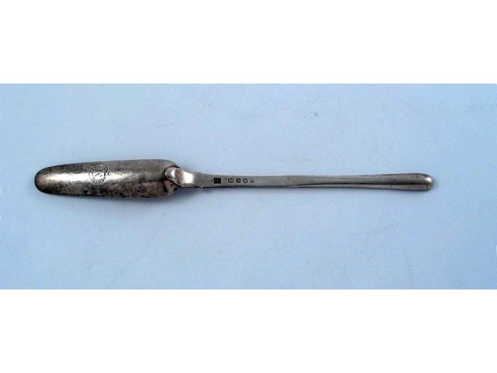 Military interest: a George III marrow scoop with shoulders engraved with the badge of West Essex M (presumably militaria) by Messrs Ealy Fearn and Chawner, London 1810, 9in (23cm) long, 1.75oz.