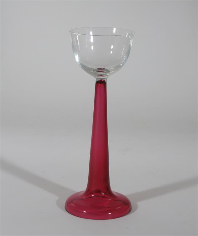 A ruby and clear dessert wine glass designed by Peter Behrens, unsigned 22 cm. high