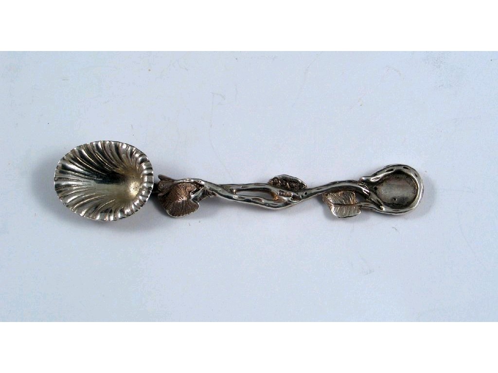 A William IV cast saltspoon, in the form of a stylized convulvulus flower and stem with leaves, maker's mark distorted, "WR"?, London 1832, 3.8in (9.6cm) long, 0.5oz.