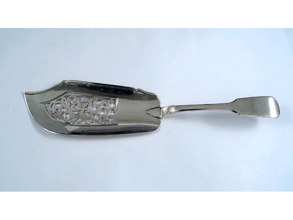 A Victorian fiddle pattern fish slice, by S.Hayne and D.Cater, London 1844, 4.75oz.