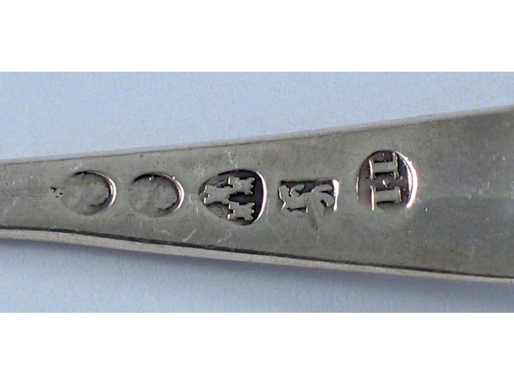 Double duty mark; a George III bright cut teaspoon, initialled by John Longlands, Newcastle 1797.