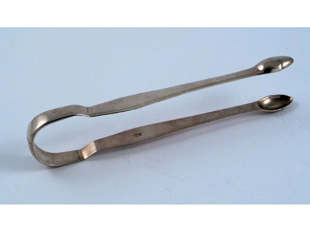A pair of George III sugar tongs, with acorn bowls and shaped arms, initialled I * M, by Hester Bateman, London 1784 (incuse duty mark).