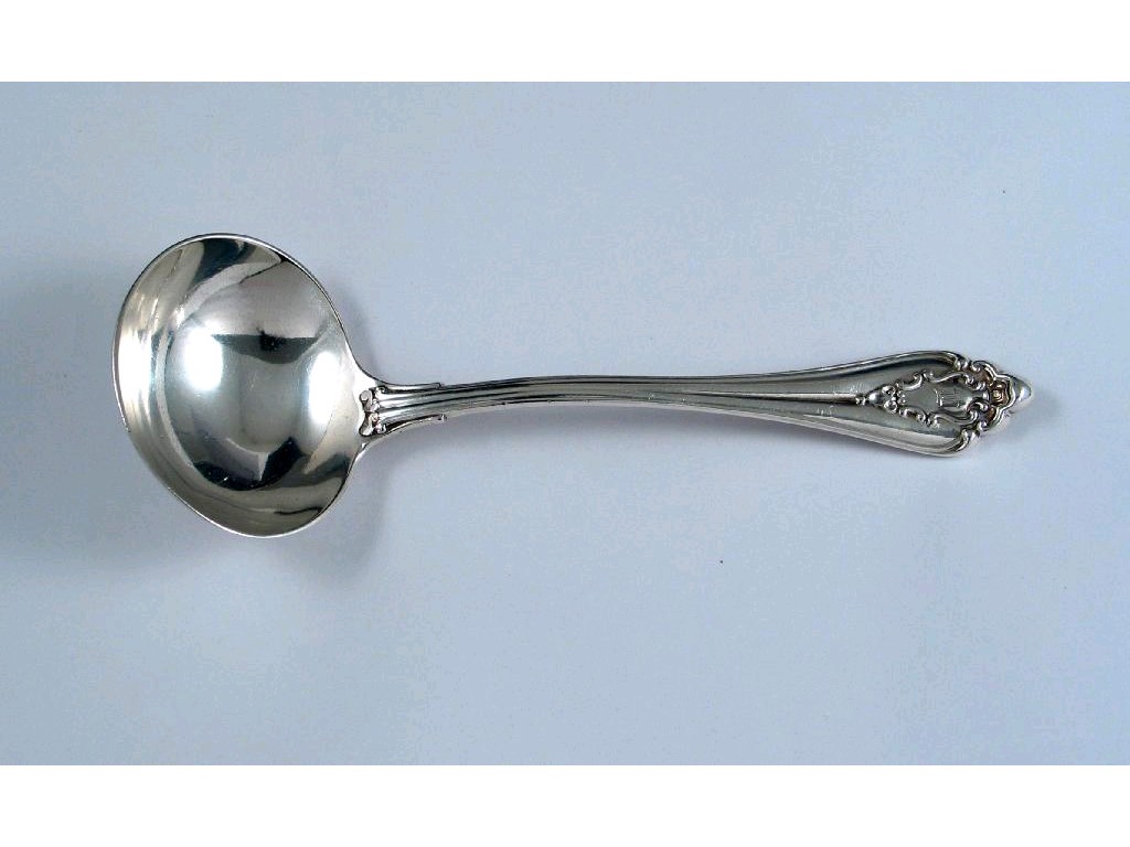 A Victorian sauce ladle , in a pattern of unknown name* inialled L, by J.Wakeley and F.C. Wheeler, London 1894, 3oz. *See Pickford, I: Silver Flatware pp152, Fig 241.