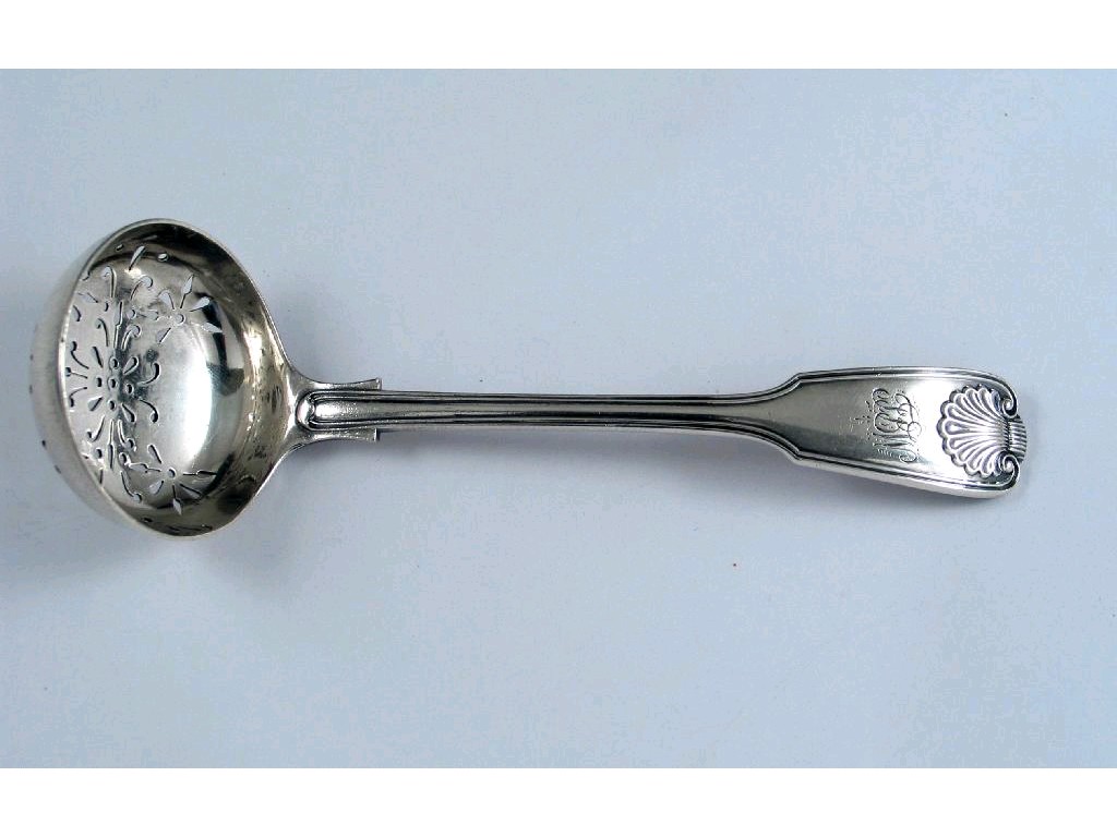 A Victorian fiddle thread and shell pattern sugar sift ladle