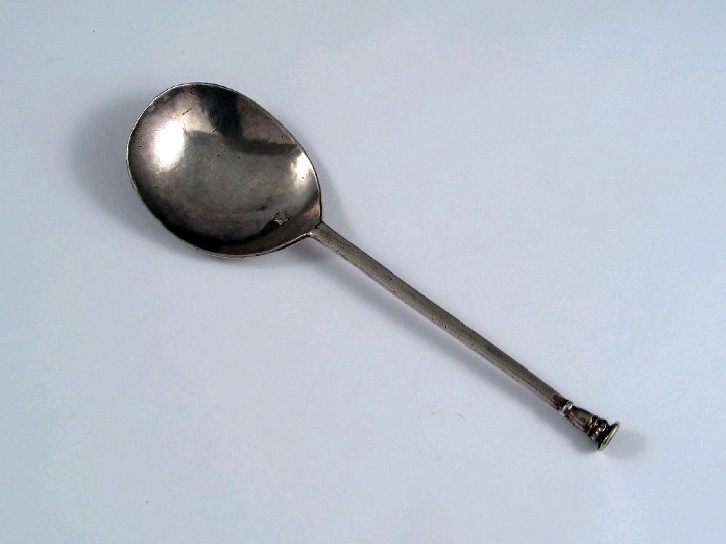 A Commonwealth seal top spoon, with a small, slender teminal, scratched "FB", by Steven Venables, London c.1654 (date letter unclear), 6.1in (15.5cm) long, 1 oz.