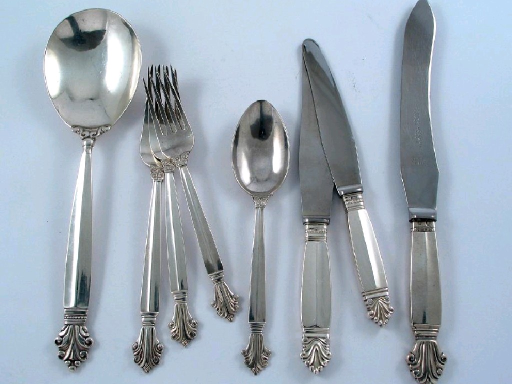 A quantity of Danish acanthus pattern flatware and cutlery, comprising of nineteen assorted knives (stainless steel blades), twenty assorted forks, fourteen assorted spoons and a carving knife and fork (with steel blade), mixed dates, the majority with import marks, 54oz weighable silver. (55)