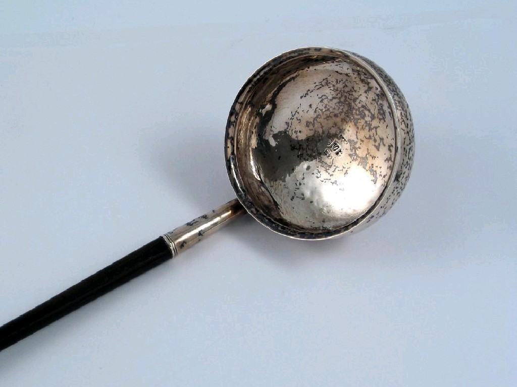 A George IV Scottish provincial punch ladle, with a circular bowl and a whalebone handle, by Alexander Cameron, Dundee 1820-30, 16in (41cm) long.