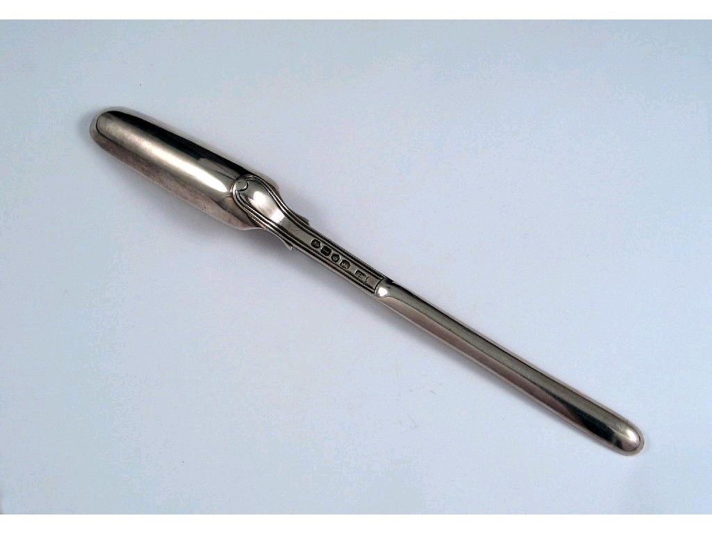 A George IV marrow scoop, with a thread pattern centre section (with shoulders), by William Schofield, London 1826, 8.9in (22.6cm) long, 2.25oz.