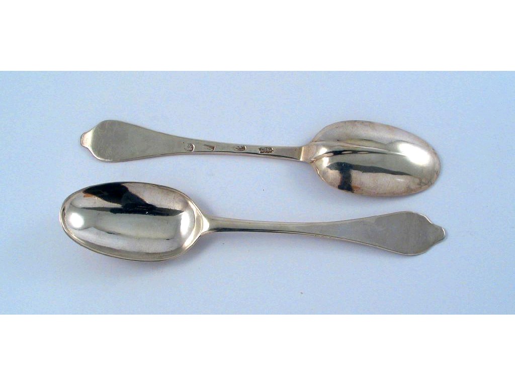 A pair of Queen Anne wavyend tablespoons, with plain moulded rattails, by Thomas Sadler, London 1706, 7.75in (19.9cm) long, 3.25oz. (2)