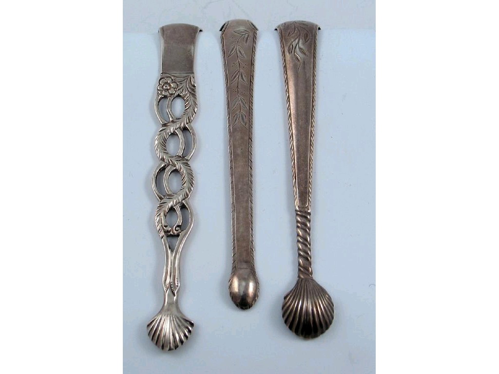 A pair of George III Irish feather-edge sugar tongs
