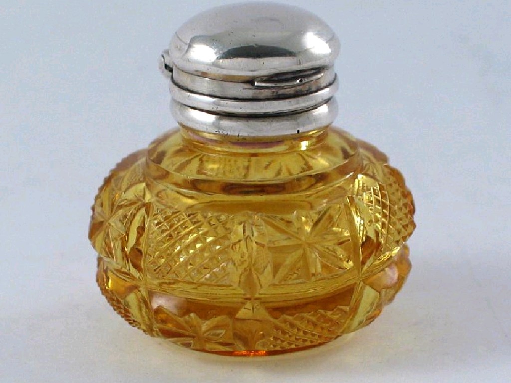 A Victorian mounted amber coloured glass vinaigrette