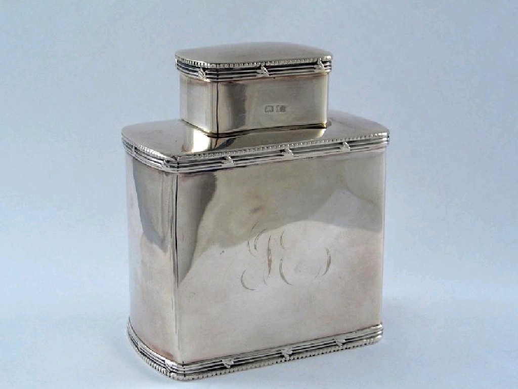 An Edwardian oblong tea caddy, with a pull-off cap, by Deakin and Francis, Birmingham 1905, 3.5in (9cm), 3.2oz.