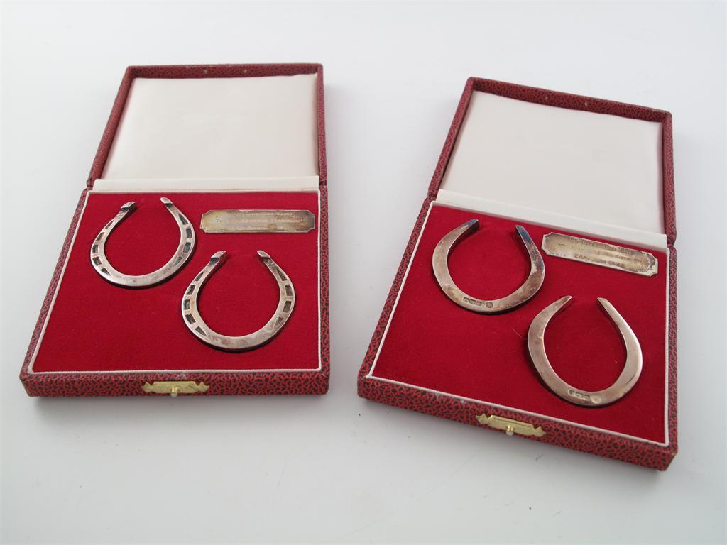 Horse racing: Two modern cased pairs of 'horseshoe' napkin rings