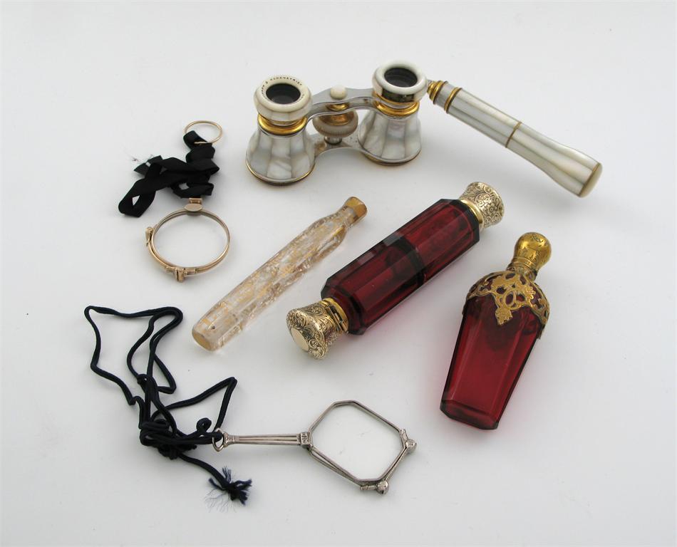 A mixed lot comprising: a pair of giltmetal and mother of pearl opera glasses