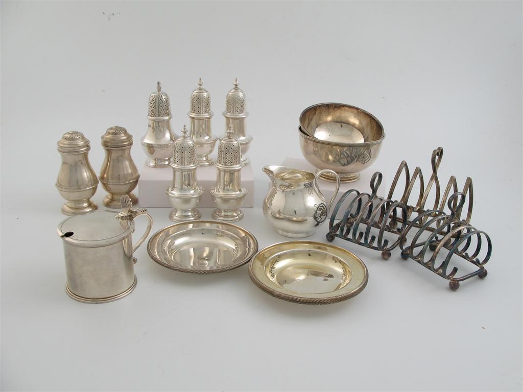Miscellaneous small modern silver: seven various pepperettes