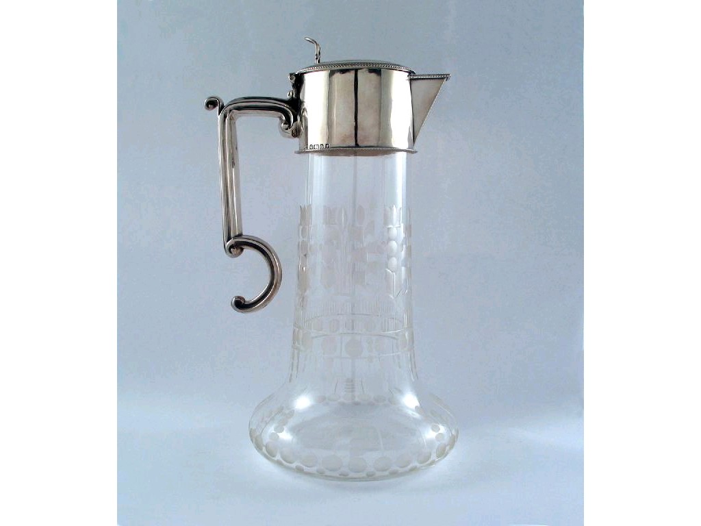 A Victorian mounted glass claret jug, with wheel cut decoration and bead borders, by W and G. Sissons, Sheffield 1883, 9.5in (24cm).