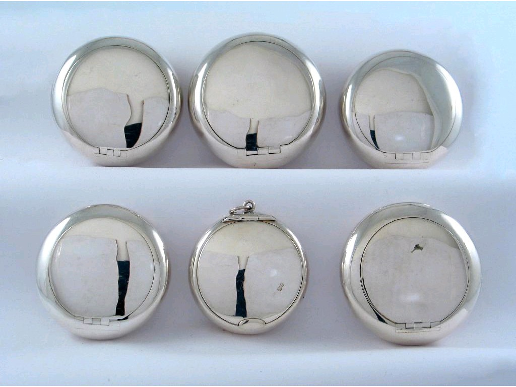 Six assorted plain circular examples, (including one with a suspensory ring), mixed makers and dates, late Victorian-modern, 12oz. (6)