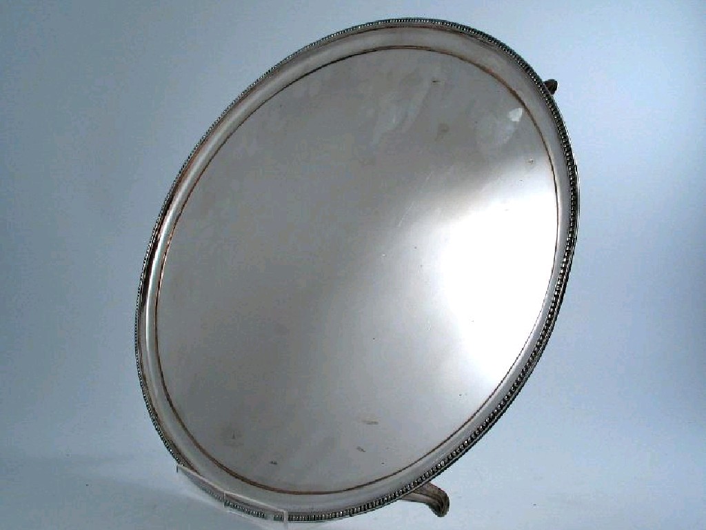 A middle period, Old Sheffield plated oval salver on four curved feet, with a beaded border, by Morton & Co, c.1790, 18in (46cm) wide.