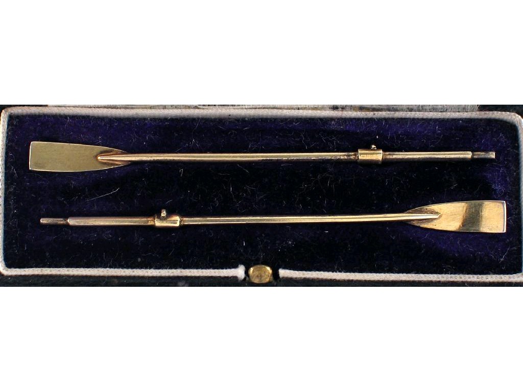 Rowing interest: A cased pair of miniature silver gilt oars in original fitted case