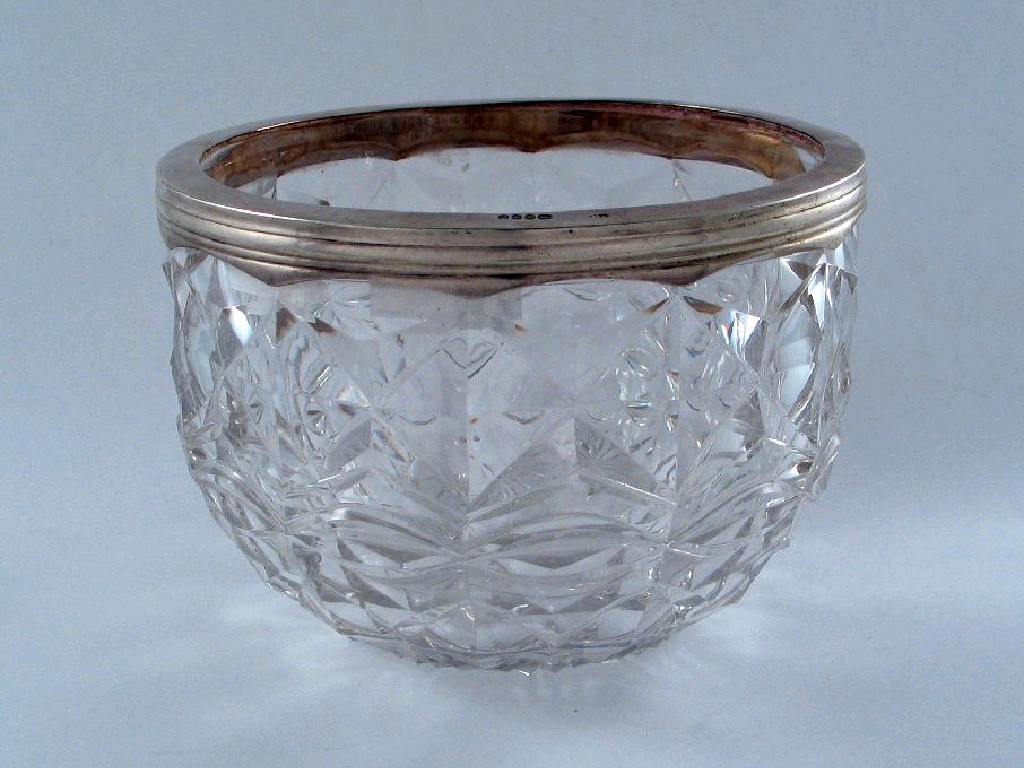 A Victorian mounted cut glass bowl, with a star cut base, maker J.H, probably John Harris, London 1862, 5.2in (13cm) diameter.