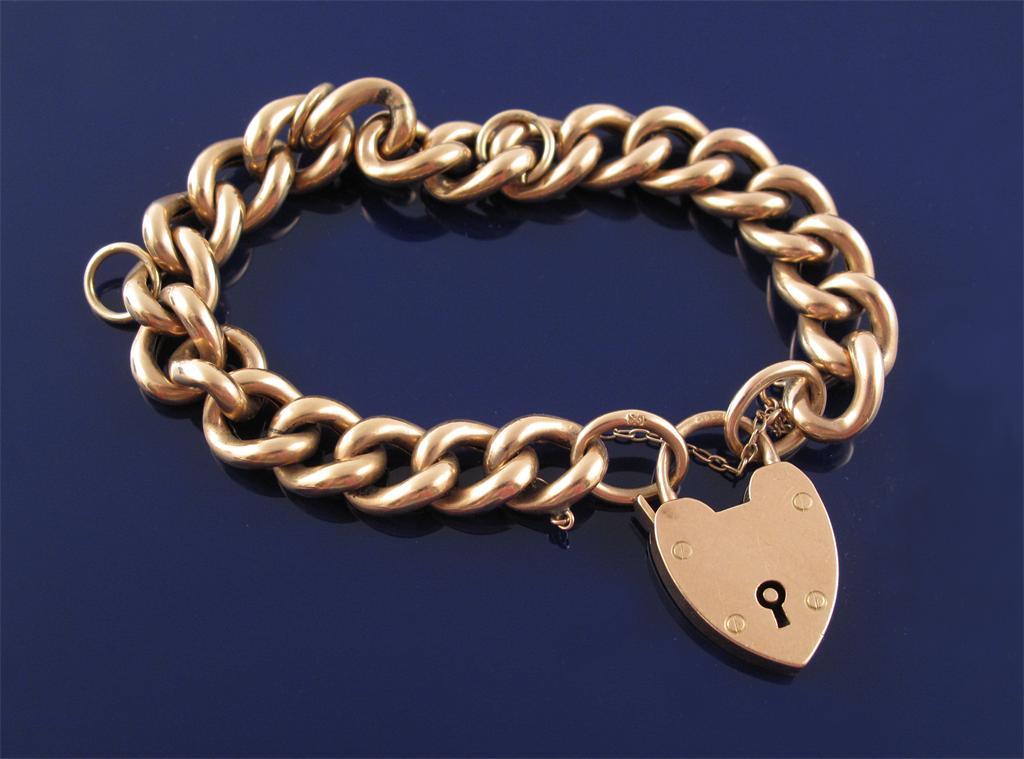 A 9ct gold curb link bracelet with 9ct gold padlock clasp. 25g. Case.