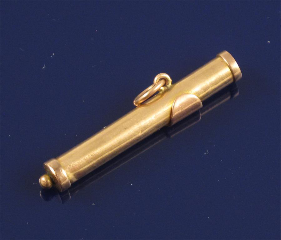 A minature gold torah scroll pendant. 3cm long.