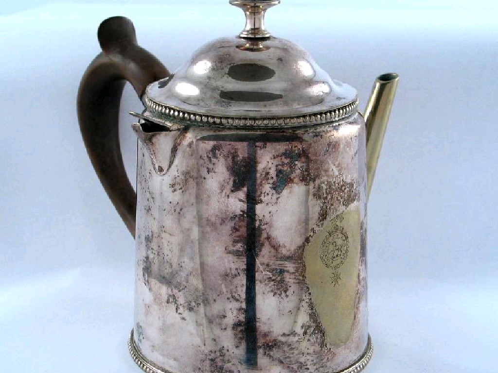 A Victorian Argyle, with bead borders, a water jacket and pull-off cover, crested, c.1870, 5.5in (14cm) high.
