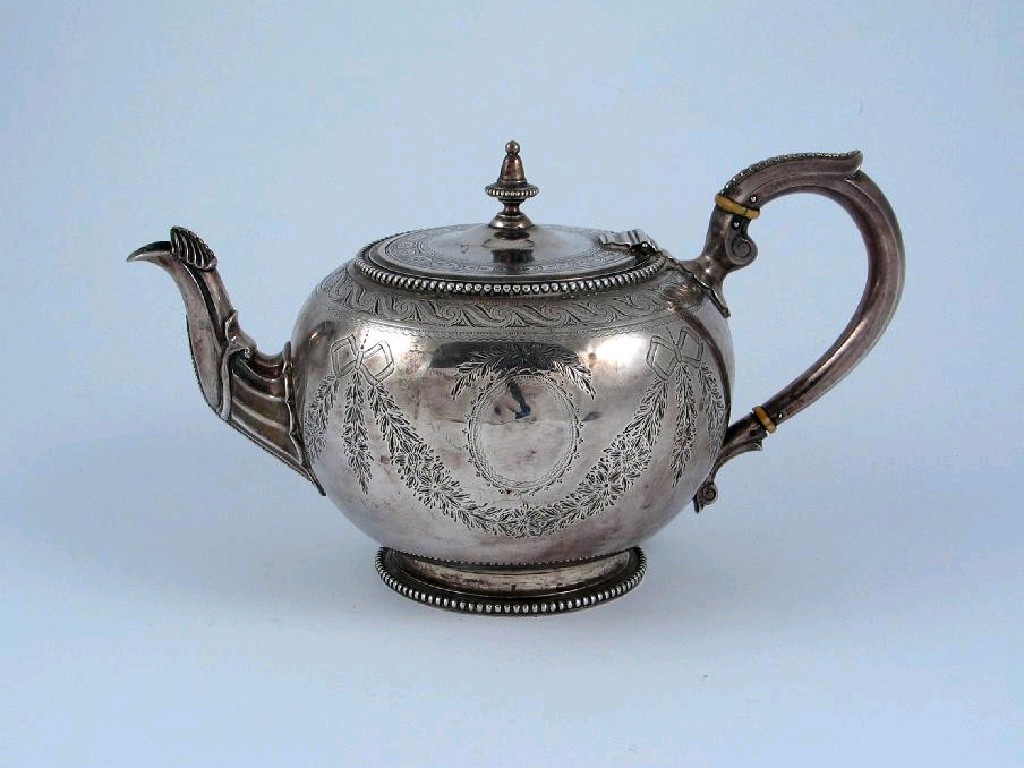 Militaria Interest: a Victorian, engraved bullet teapot with bead borders, inscribed on one side "1st Berks Rifles 1870. First prize presented by Fras.H. Goldsmid Bart. M.P., won by PTE Llewellyn Williams", possibly by Alexander Smith, London 1868, 22oz.
