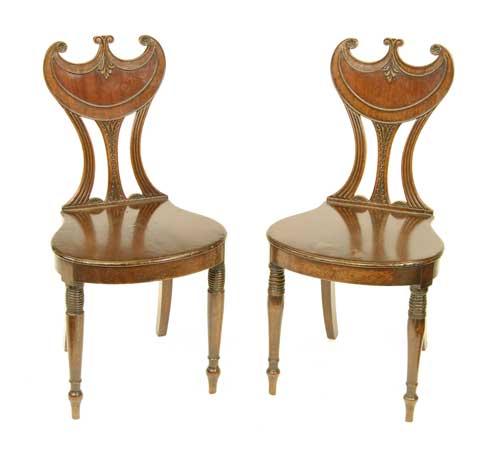 A pair of Regency mahogany hall chairs