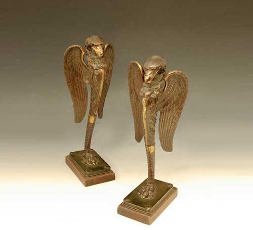 A pair of bronze and parcel gilt eagle monopodia door stops
