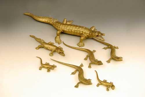 A small collection of Ceylonese brass reptiles