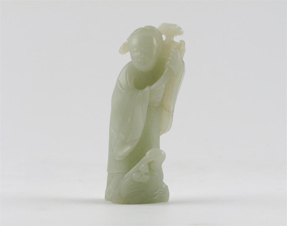 A Good Chinese celadon jade carving of a figure