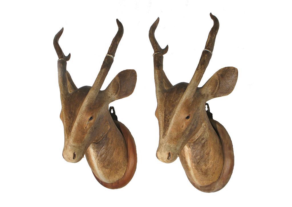 A pair of Chinese porcelain stags' heads, each with detachable antlers and mounted as trophies, 18th / 19th century, 50cm. (6)