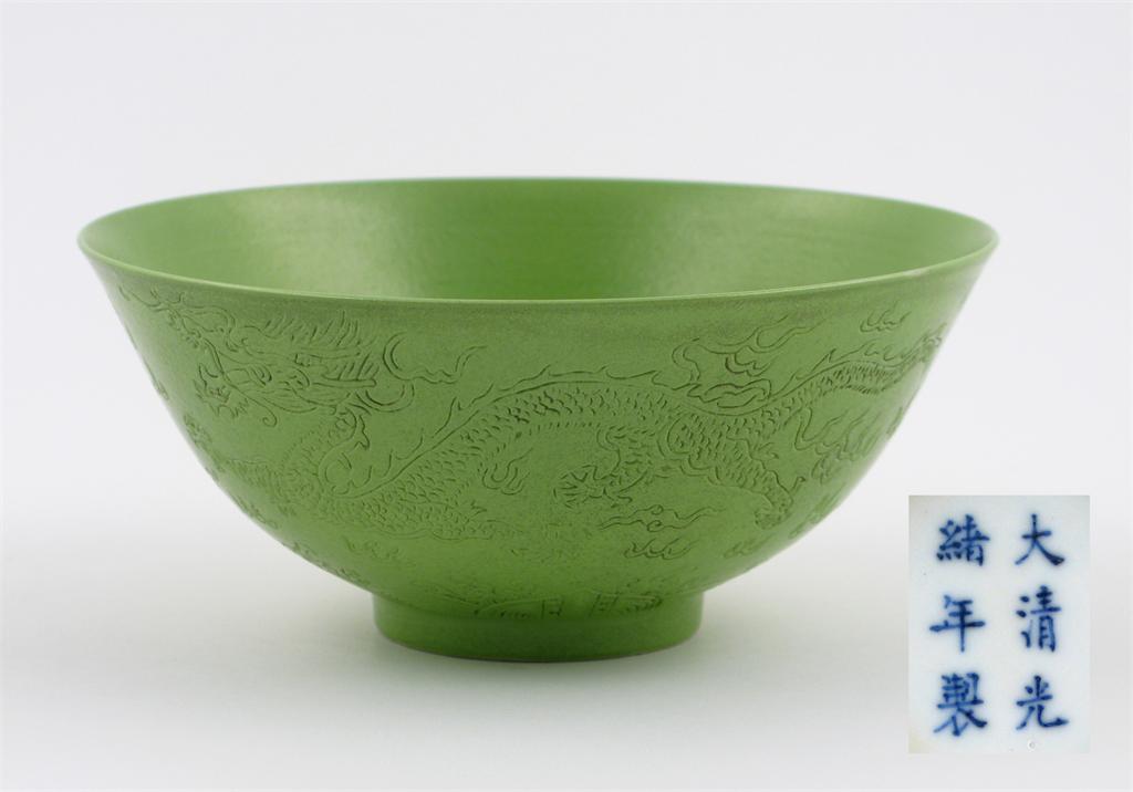 A Chinese green ground dragon bowl