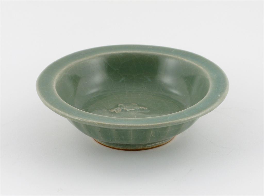 A Chinese Longquan celadon twin fish marriage bowl