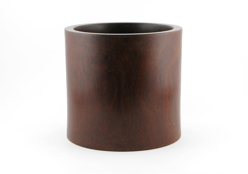 A massive Chinese hardwood scroll pot, with a subtly waisted cylindrical body, some repairs, 25.5cm diameter.