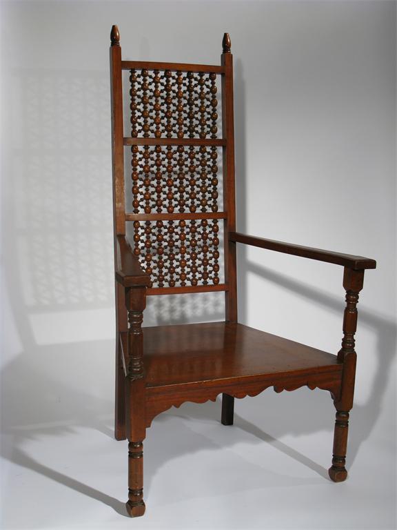 A Liberty & Co Moorish armchair the high-back set with Musharbeyeh panels