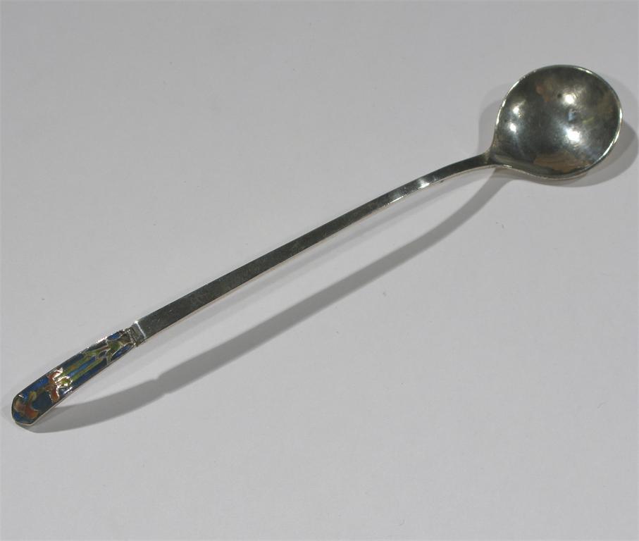 A Bernard Instone enamelled silver spoon the finial enamelled with iris motif stamped marks