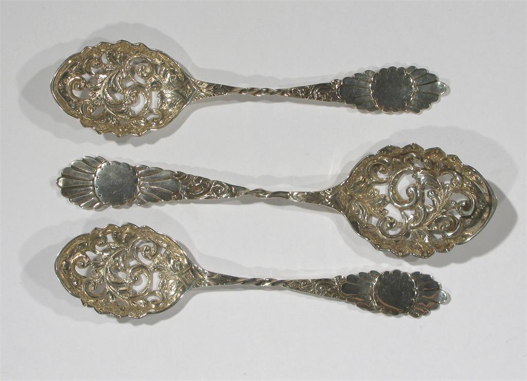 A set of three silver strainer spoons