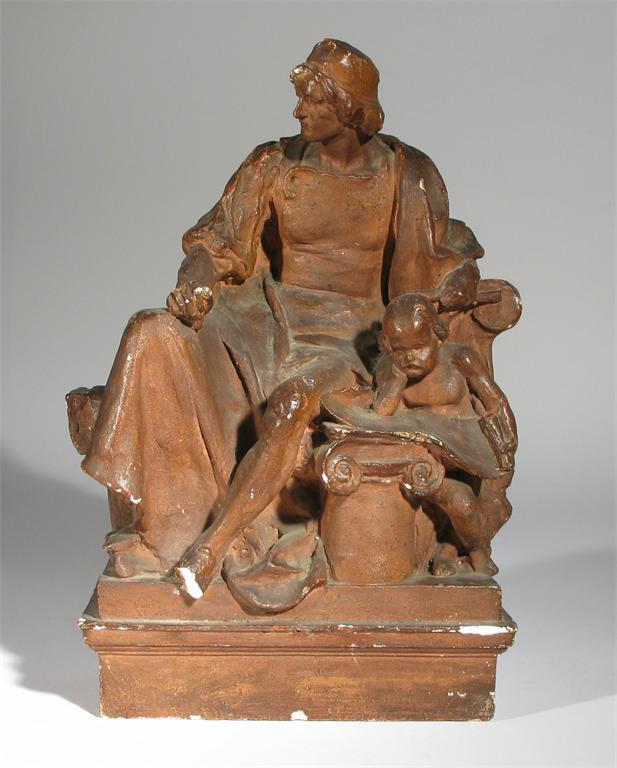 A plaster figural maquette modelled as a philosopher painted red, unsigned 37 cm. high