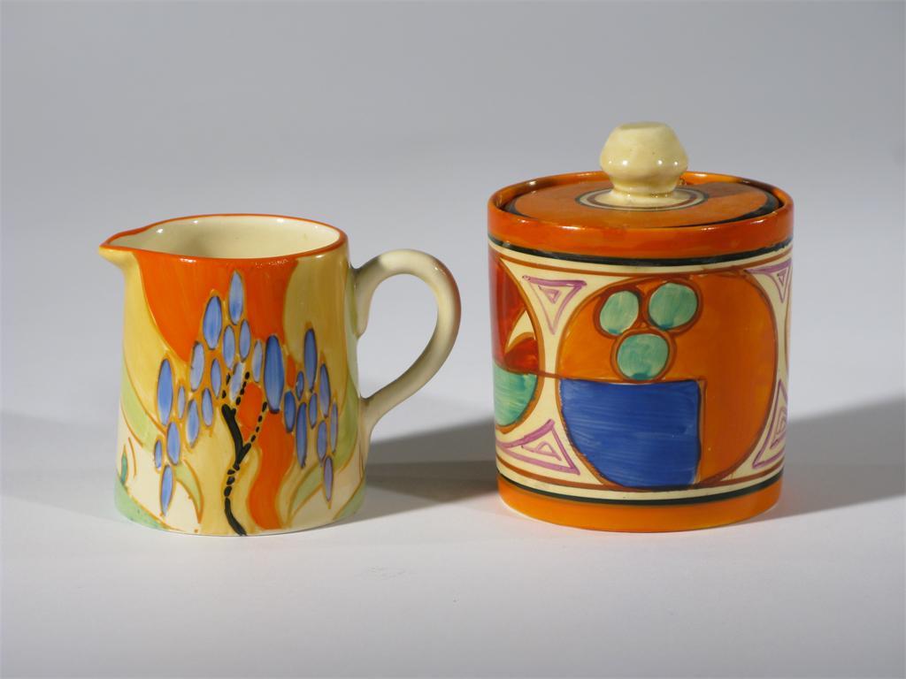 'Melon' a Clarice Cliff Fantasque Bizarre Cylindrical preserve and cover designed by Clarice Cliff