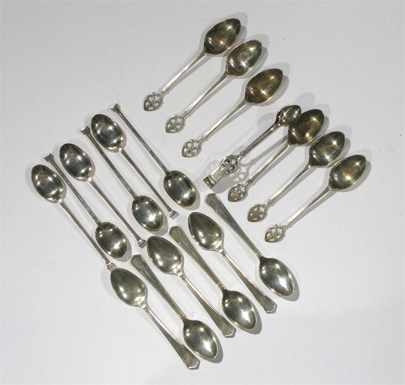 A set of six Cooper Bros & Sons silver tea spoons, in fitted case, and three other sets of silver tea spoons, stamped marks, Sheffield 1916