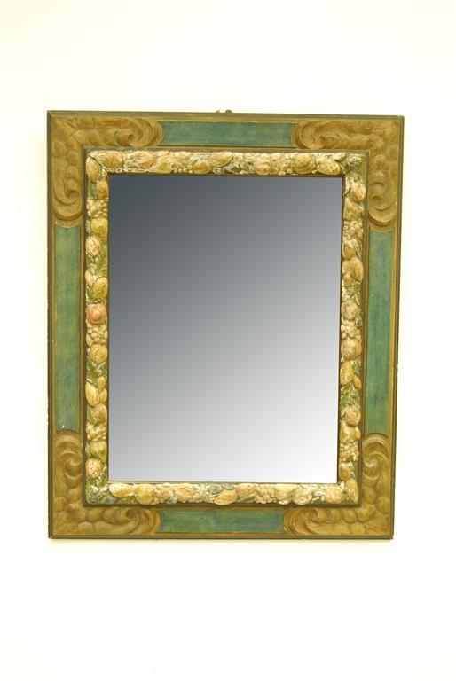 A rectangular wall mirror, with a bevelled plate and a carved fruit and polychrome decorated frame, 20th century, 22.5 x 18.5in (57 x 47cm).