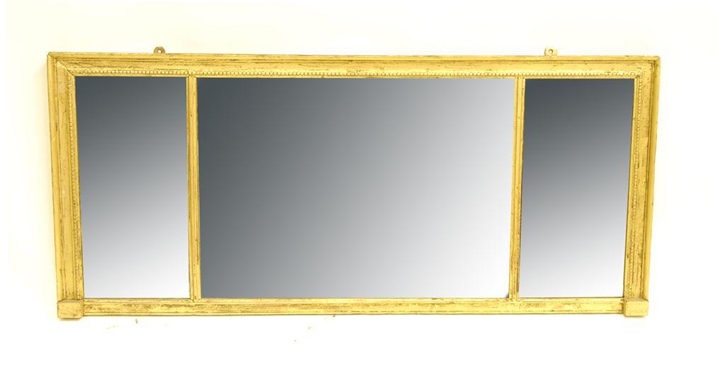 A giltwood landscape overmantel mirror, with triple plates, 20in x 45in (51cm x 114cm).