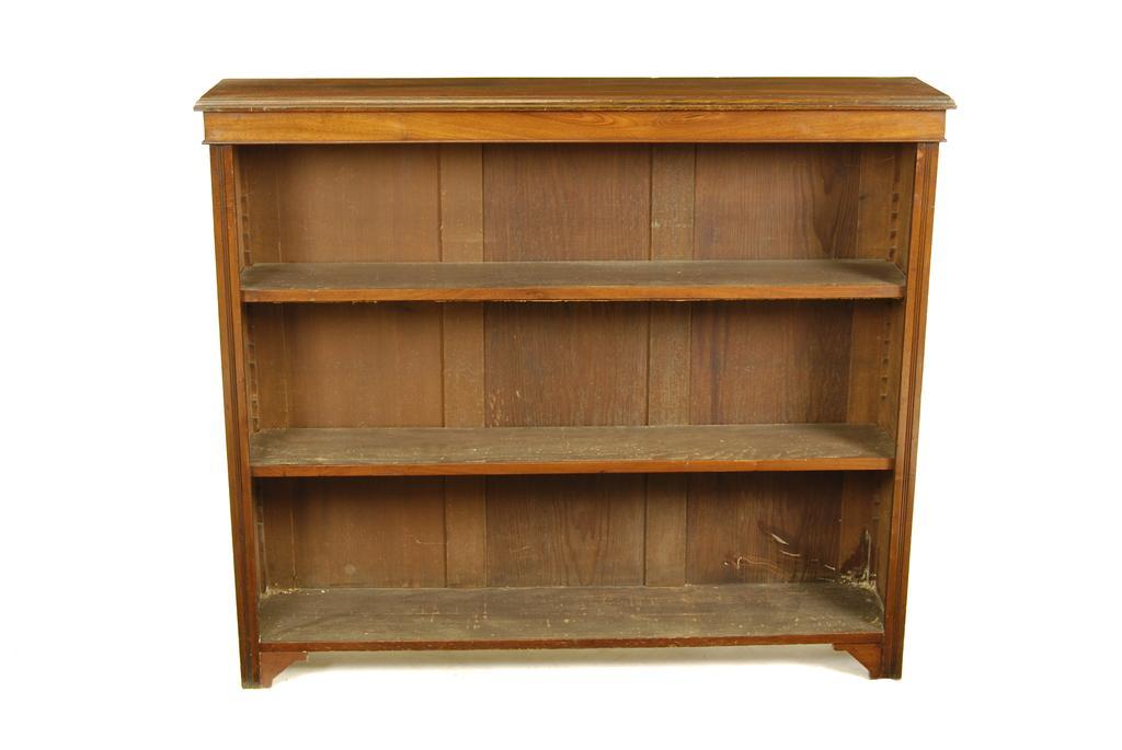 A late Victorian walnut open bookcase, with two adjustable shelves, 41in (104cm) h, 47.75in (121cm) w, 10.25in (26cm) d.