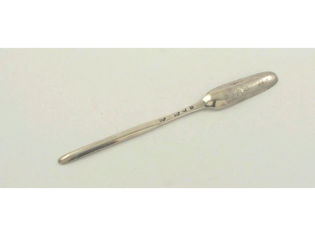 A George II marrow scoop, crested, by Elias Cachart, London 1751, 8in (20.4cm) long, 1oz.l