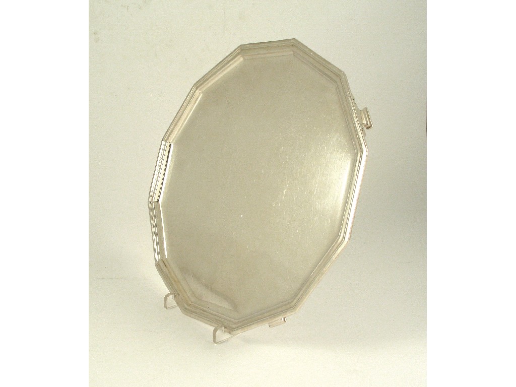 An art deco salver, with 12 sides and openwork bracket feet, by Roberts and Belk, Sheffield 1937, 10.25in (26cm)wide, 16oz